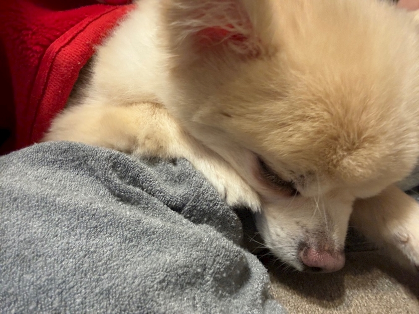 私の腕で寝ちゃった愛犬🐶💘