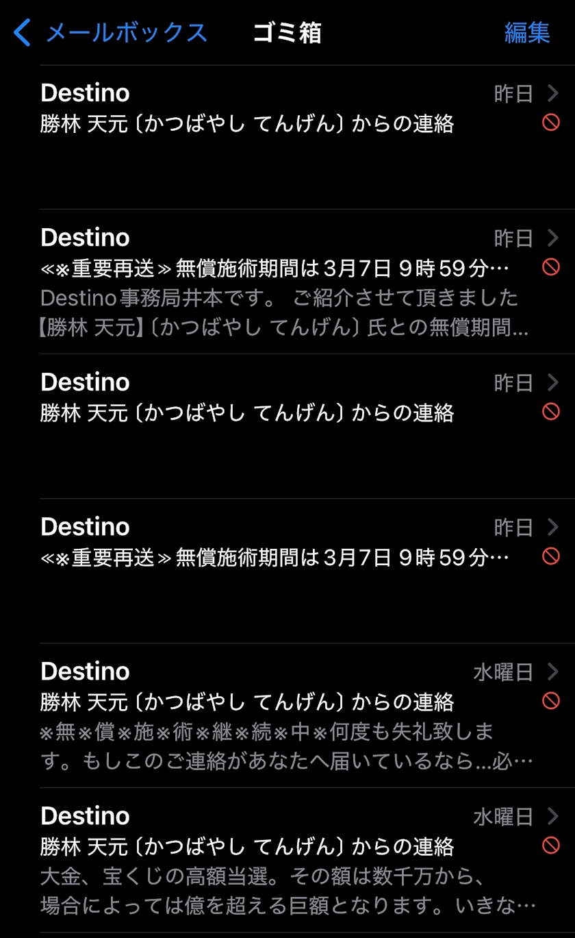 受信拒否してるけど、