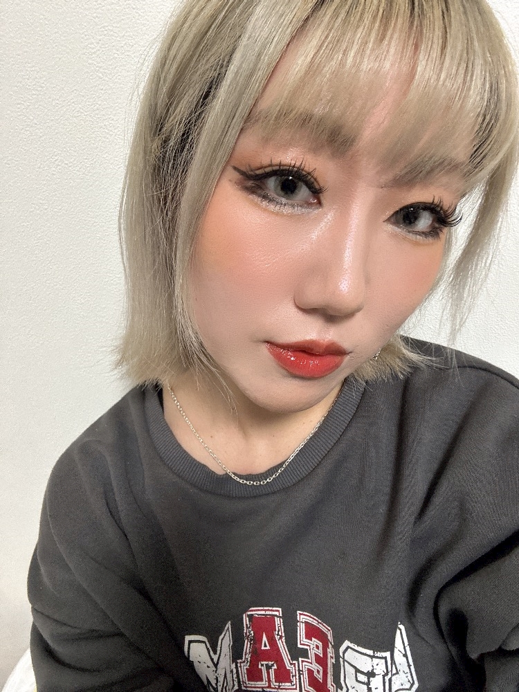 今日はそのロックスターって色のジスちゃんに似合うやつつけました🩶✨