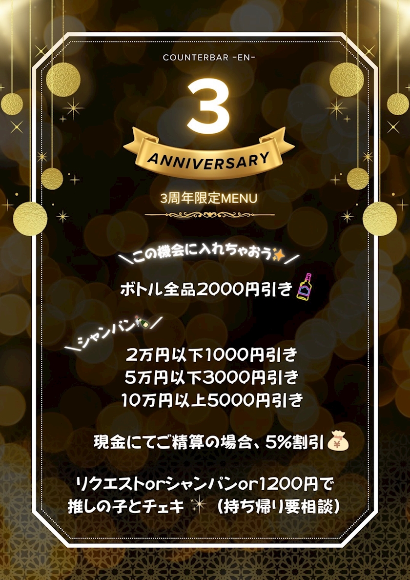eN.3周年だってよ。めでたいですわ(ง ・֊・)ง´- - 🔰いちか🟣上石神井CounterBar-eN-🟣 - COUNTER BAR -eN-・エン - 上石神井のガールズバー