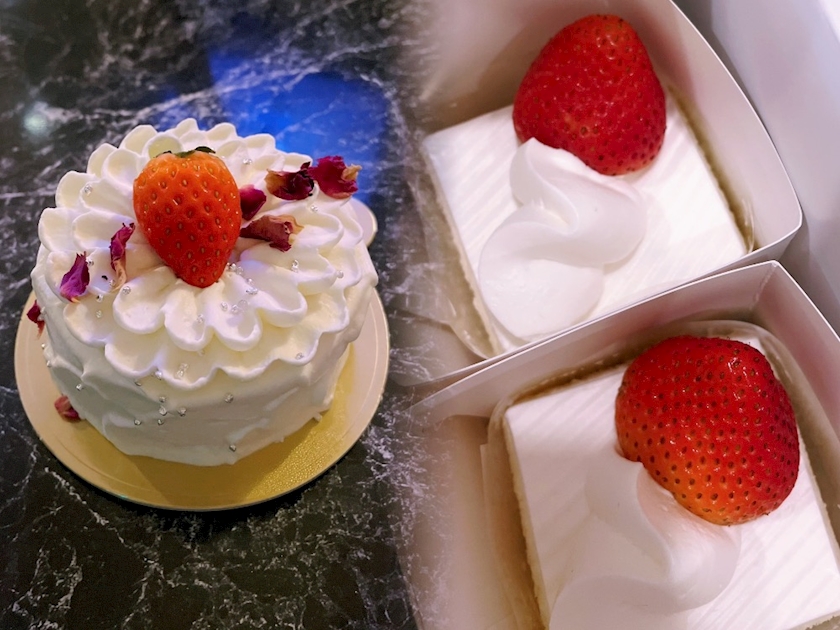 お花が入ったショートケーキと王道のショートケーキ!
