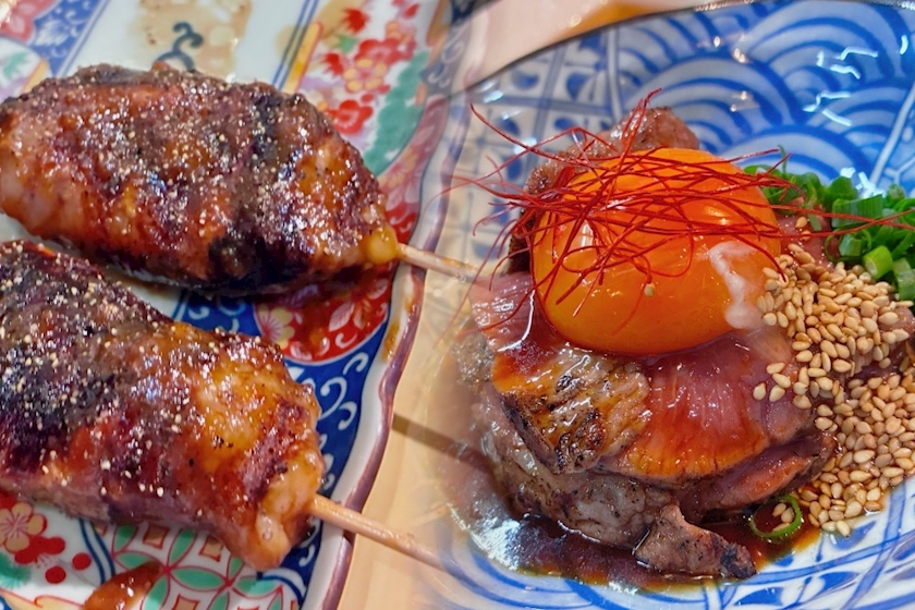 やきとん屋さんのレバーとユッケ🍖