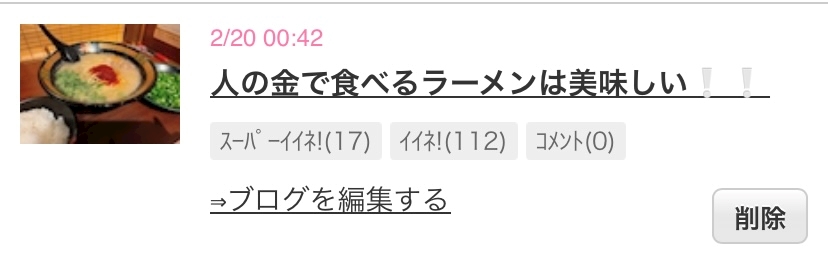 - アンサーブログ→『人の金で食うラーメンは美味しい』