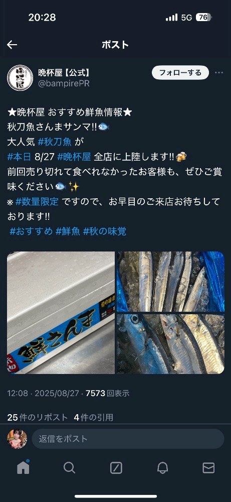 友達に立ち飲み屋にサンマ入ったよーーって連絡するために!笑