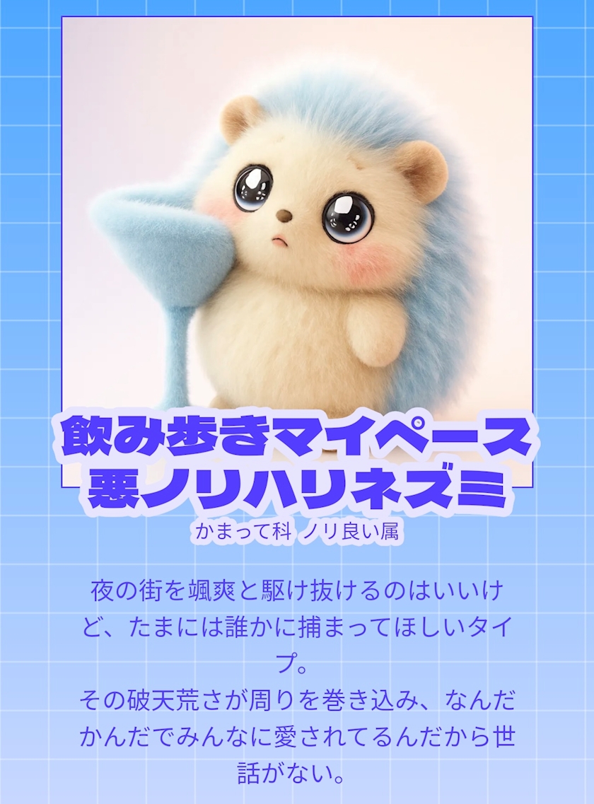 飲み歩きマイペース悪ノリハリネズミ