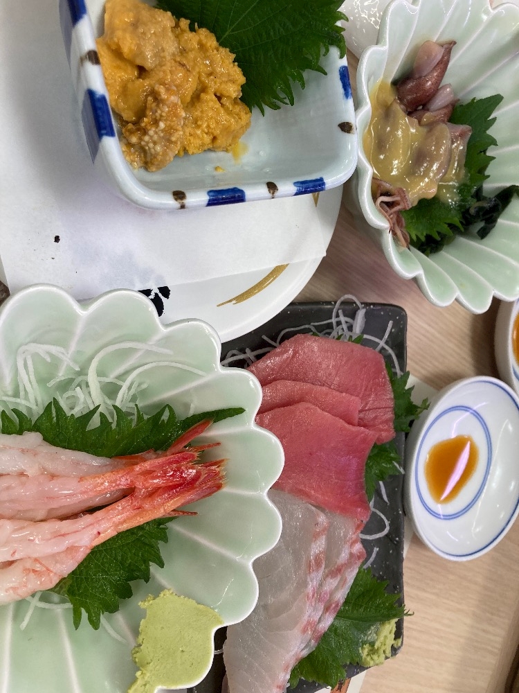 お刺身とエビとウニ食べたよ〜🫶