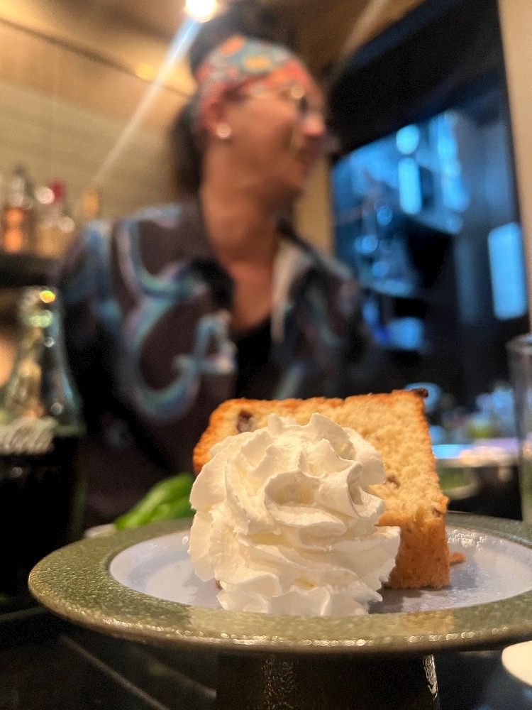 デザートで食べたラムレーズンのシフォンケーキ🍰🫖