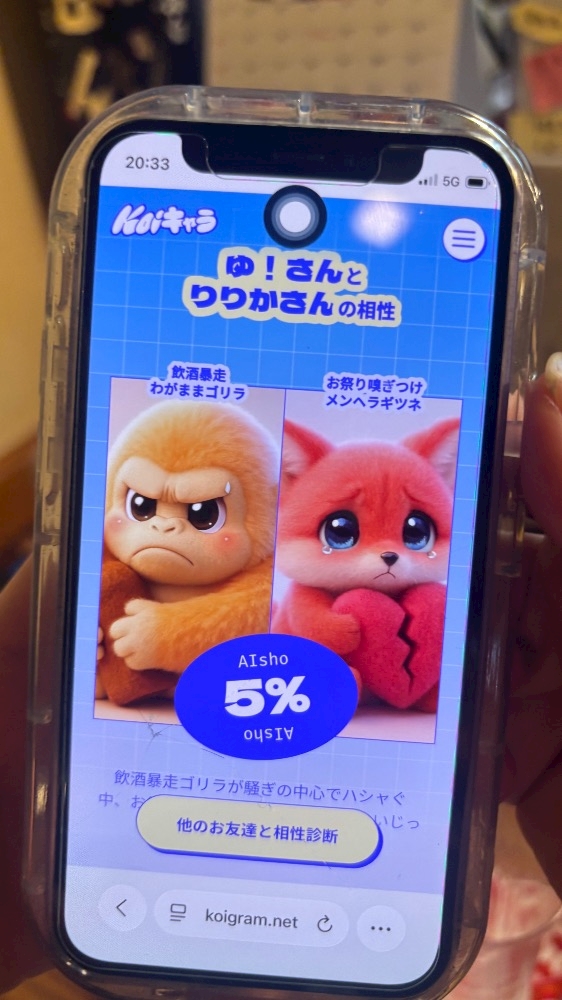 嘘でしょ毎月飲み行ってて騒ぎまくってんのに5%しか相性良くないのꉂ🤣w𐤔