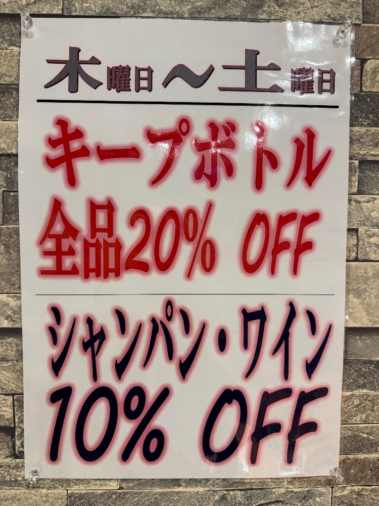 makeselfラウンジ今日までボトルキープ20%