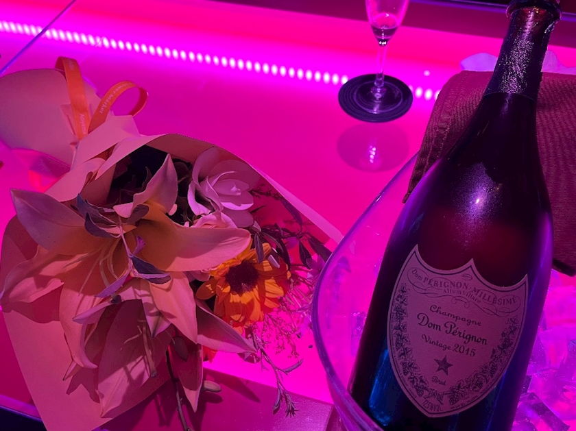 シャンパンとお花嬉しい😊