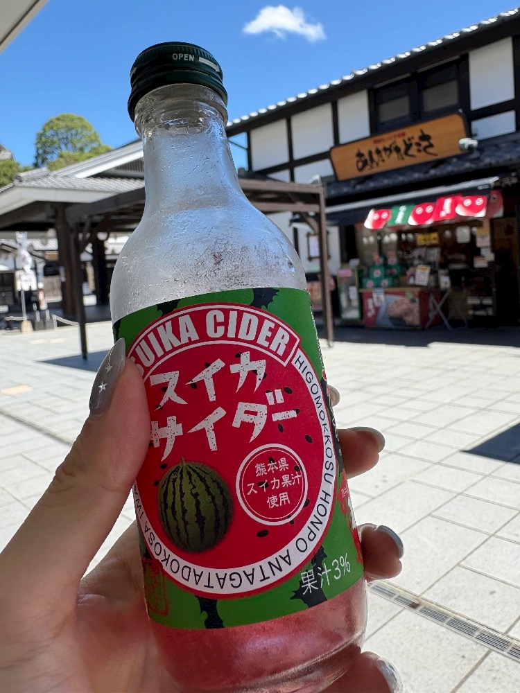 片手にプロントスイカジュースを