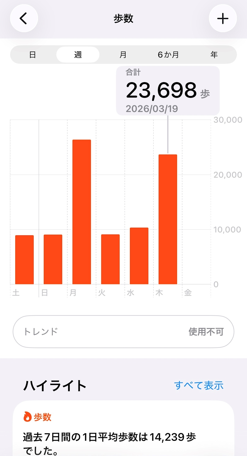 まおは徒歩移動大好き界隈で普段から1万歩くらいはマストで歩いているので、