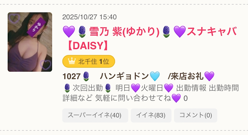 名前:💜🪻雪乃 紫(ゆかり)🪻💜スナキャバ【DAISY】(ユキノ ユカリ)
