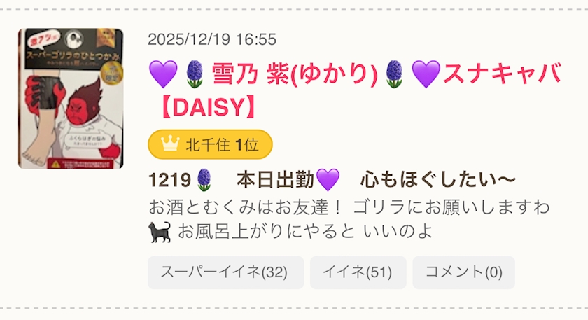 名前:💜🪻雪乃 紫(ゆかり)🪻💜スナキャバ【DAISY】(ユキノ ユカリ)