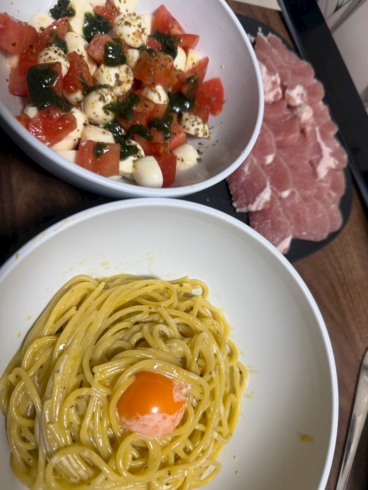 それだけだとって思ってごちゃまぜカプレーゼとカルボナーラも