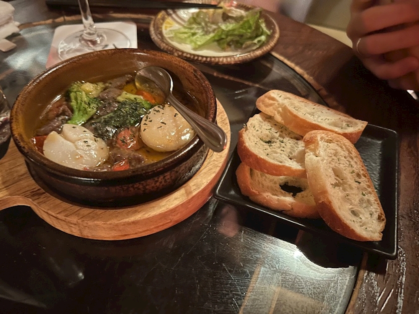 ホタテと砂肝のアヒージョ