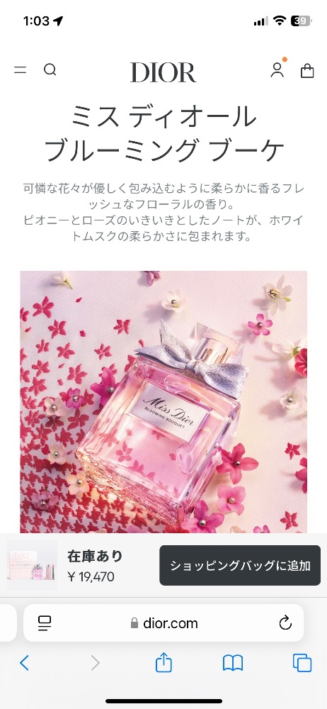 香りが、Diorの「ブルーミングブーケ」