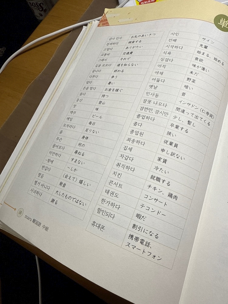 明日韓国語のテストがあるので