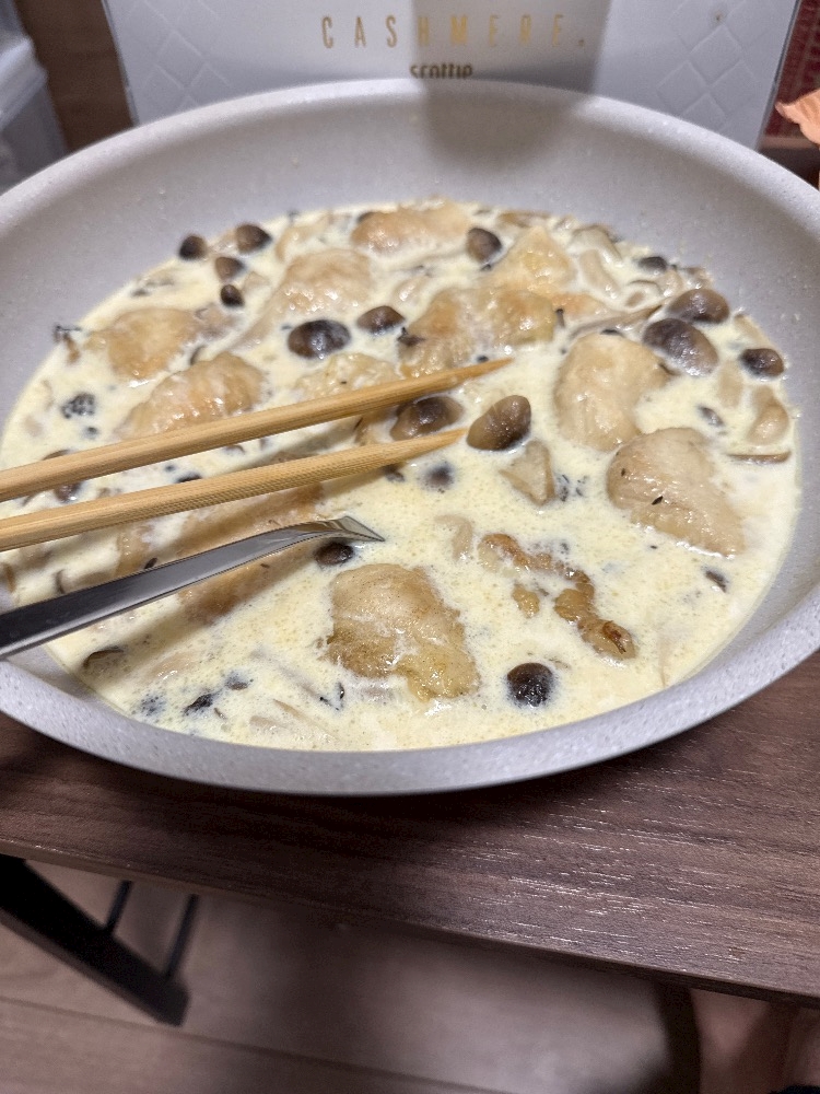 むね肉とキノコのクリーム煮です
