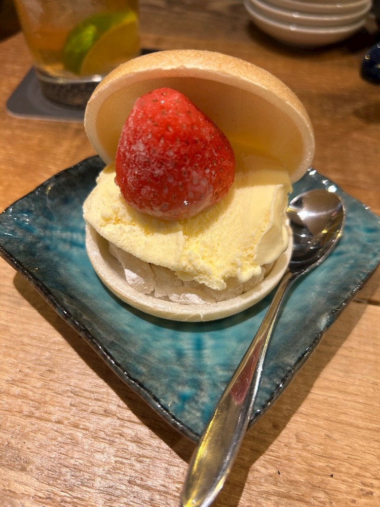 アイスの下のわらび餅の食感も良くて、