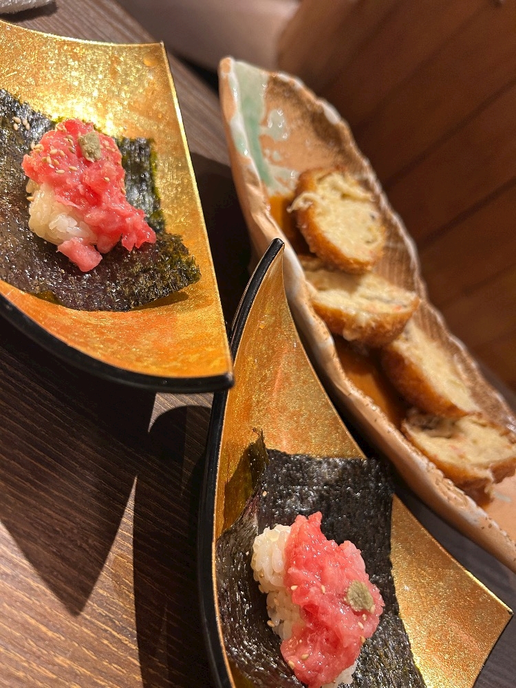 うめーまぐろ包みとカニクリームコロッケ🦀🐟