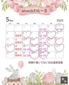 火曜~木曜 19:00~0:00 金土 19:00~翌1:00 日曜 17:00~22:00 祝前日 未定 |