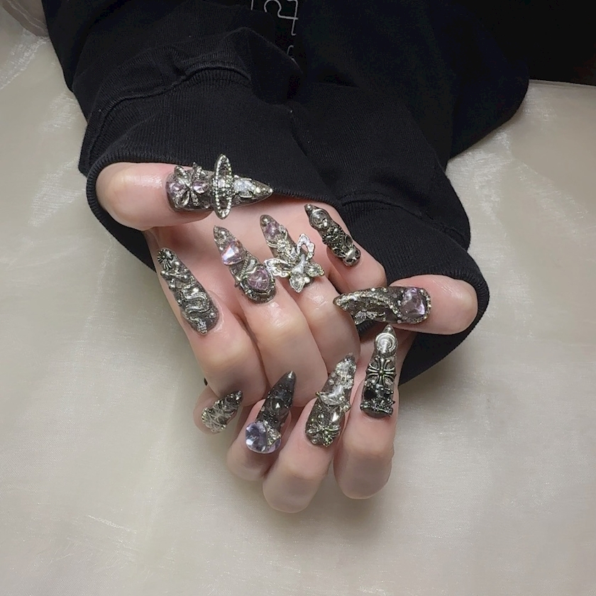 ピンクの清楚系ネイルから黒の地雷系ネイルになったけどやっぱこーゆー感じの方がしっくりくる👍🏻