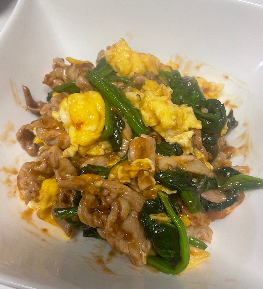 ほうれん草と卵とお肉で