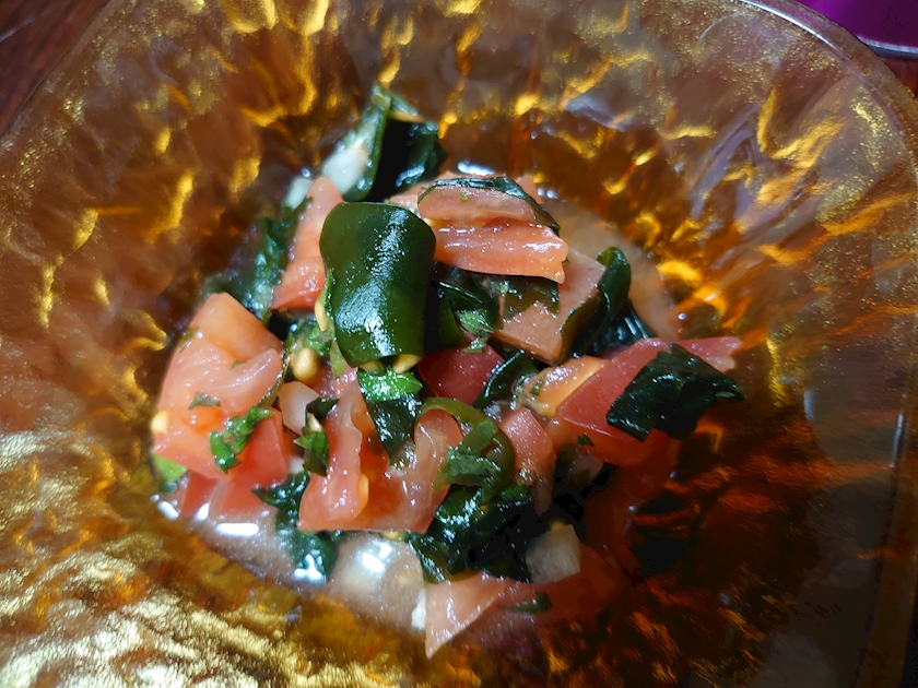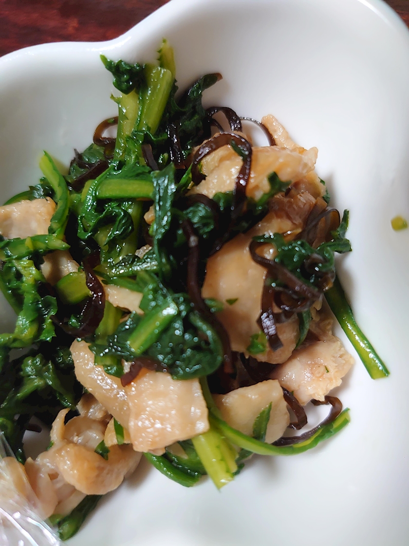 鶏皮と春菊の塩昆布和え