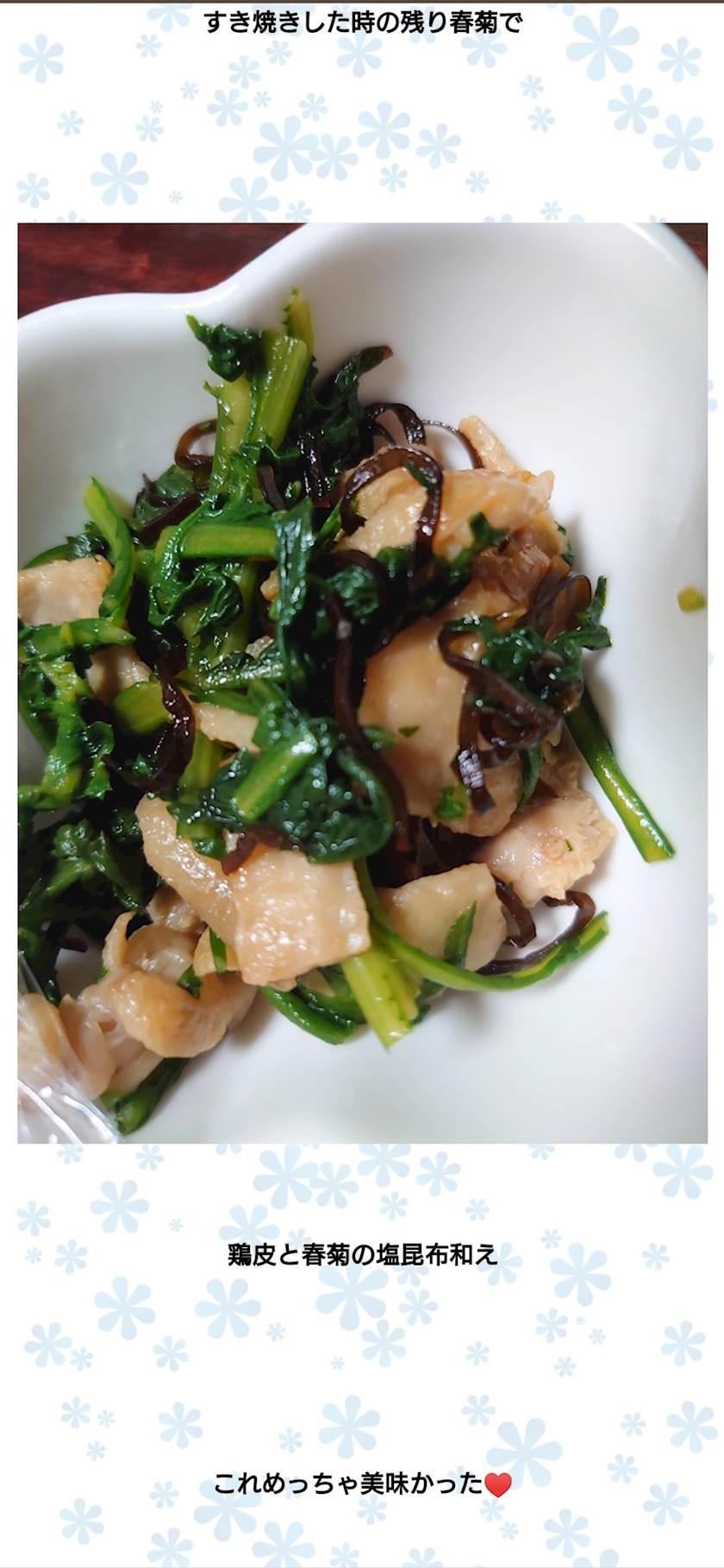 鶏皮と春菊の塩昆布和え