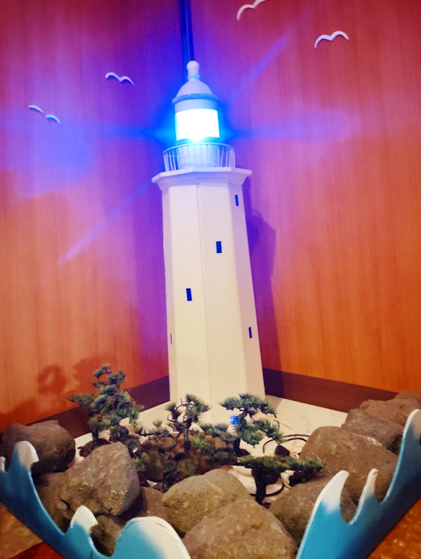 ホテルからも見える灯台の模型が