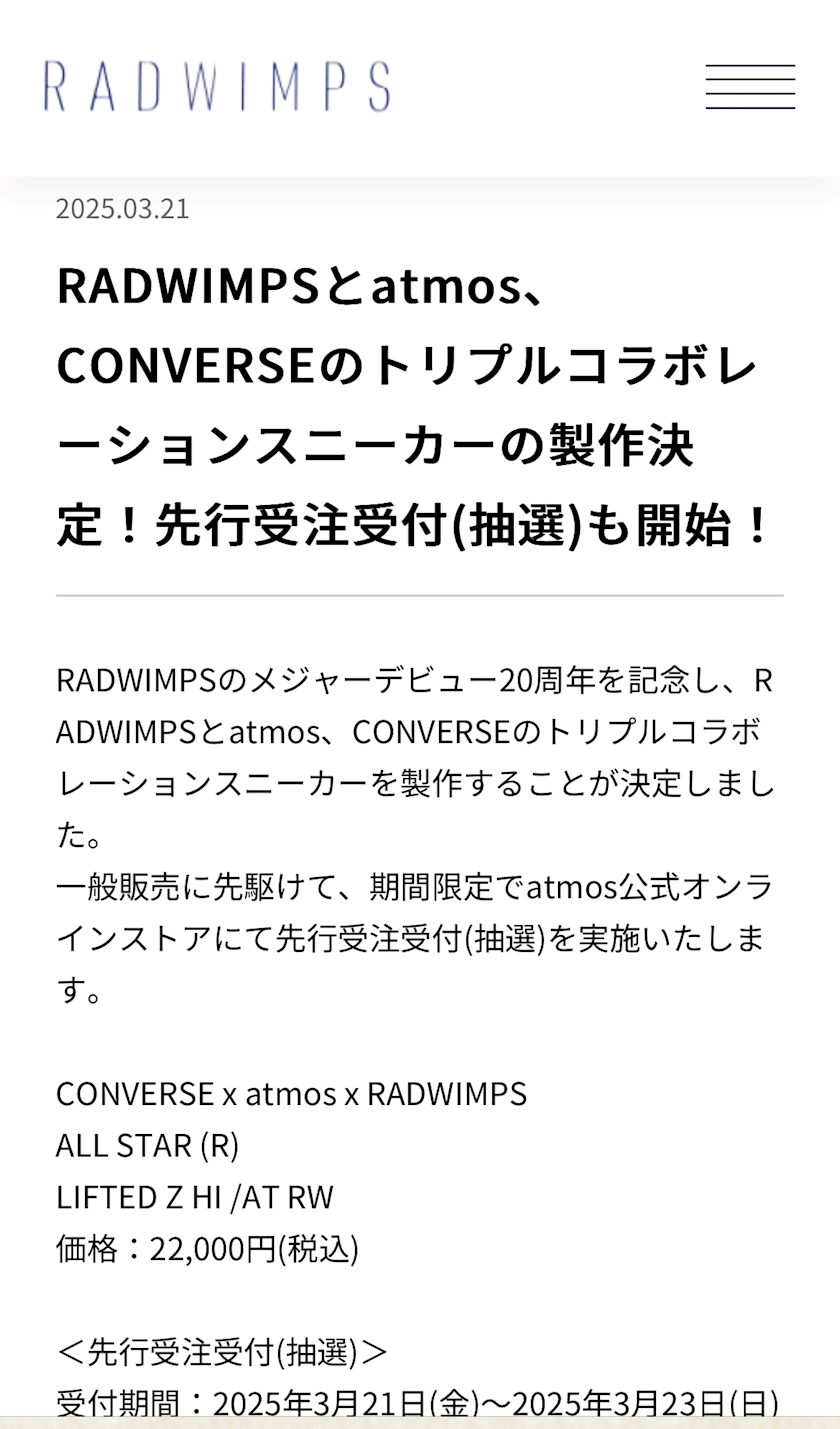 RADWIMPS、atmos、CONVERSEの