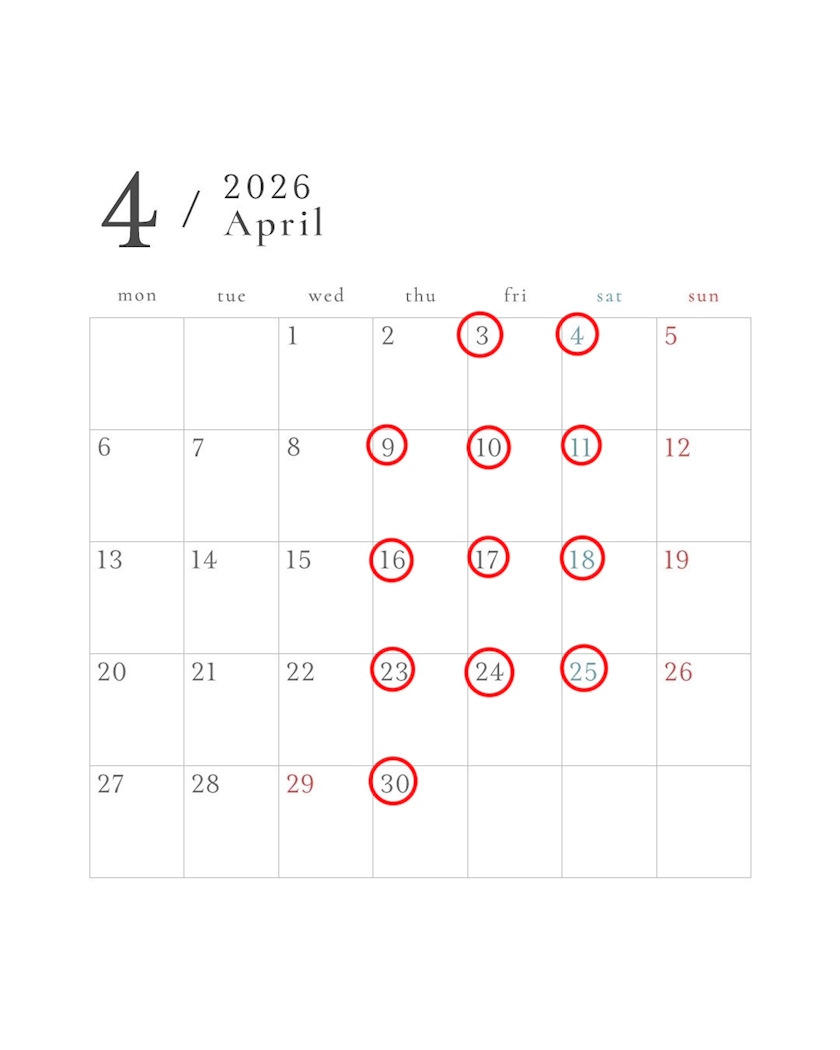 4月の出勤予定です🍀.*