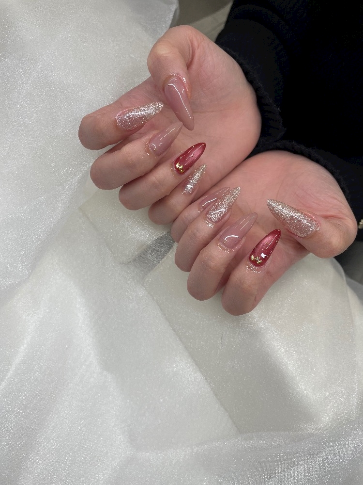 マグネットネイル、フラッシュネイルにストーン✨️