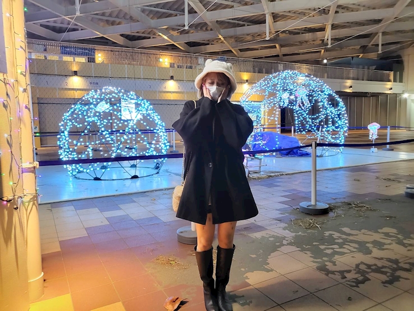 親に明るい水族館の前でとってもらった!笑