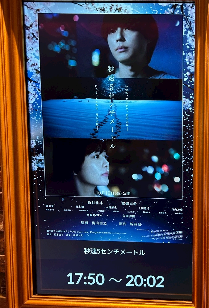 この前、秒速5センチメートルの実写映画を見に行ったよ!