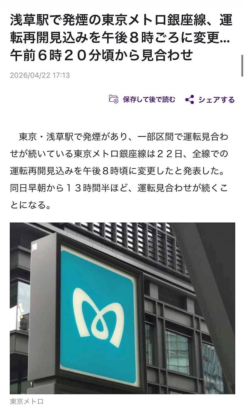 「午後8時ごろの復旧を予定」と😨ガーン