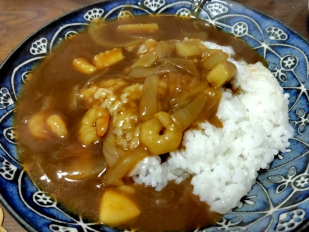 で今夜はシーフードカレー