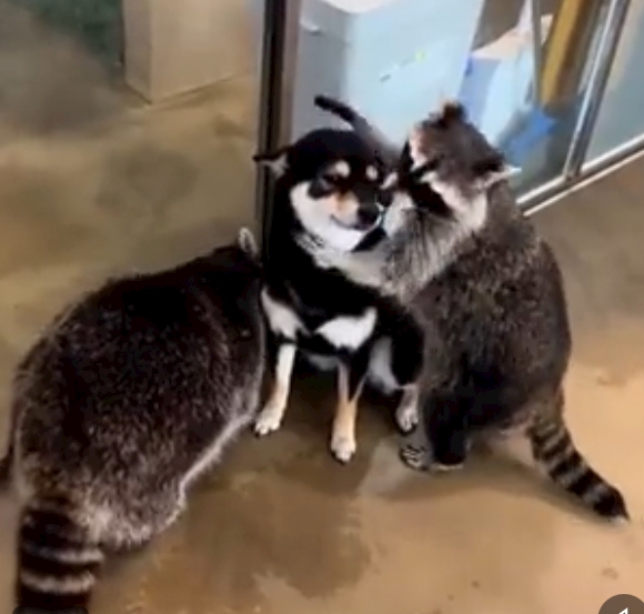 アライグマに仲間と間違われ歓迎される🐶💦