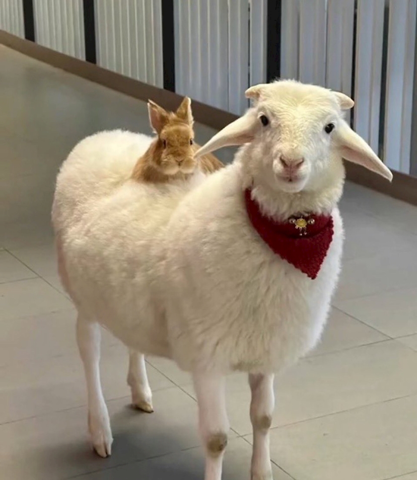 種を超えた微笑ましいお友だち🐇🐏💕✨