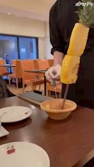 動画はパイナップルをチョキチョキしてもらってるところです