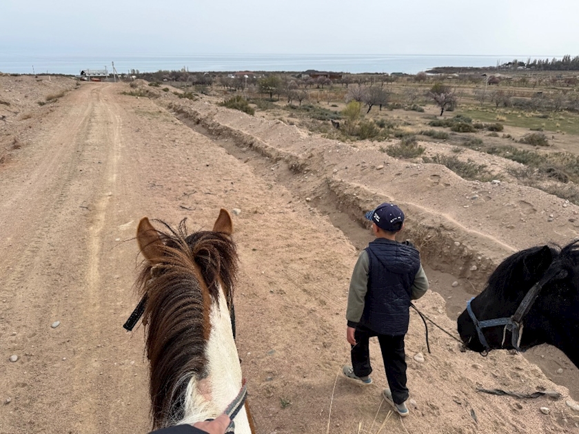 お馬さんに乗ってのイシククル湖お散歩は