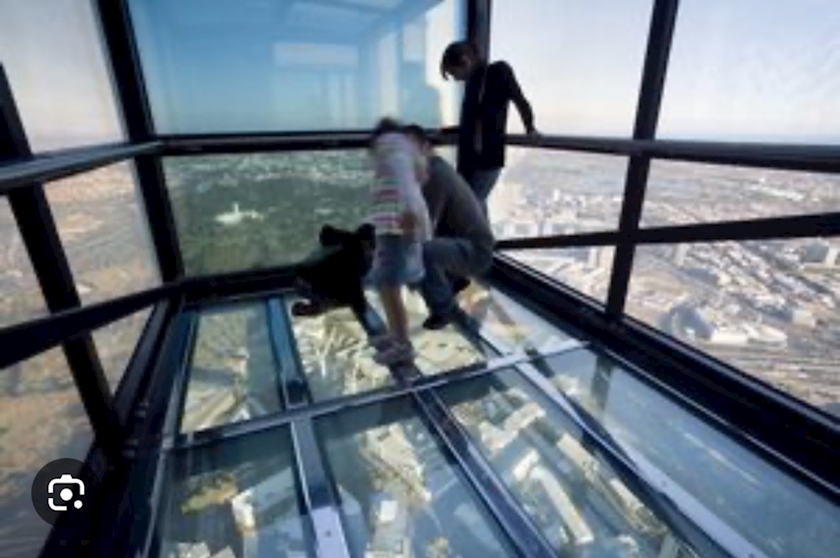 ガラス張りの床に