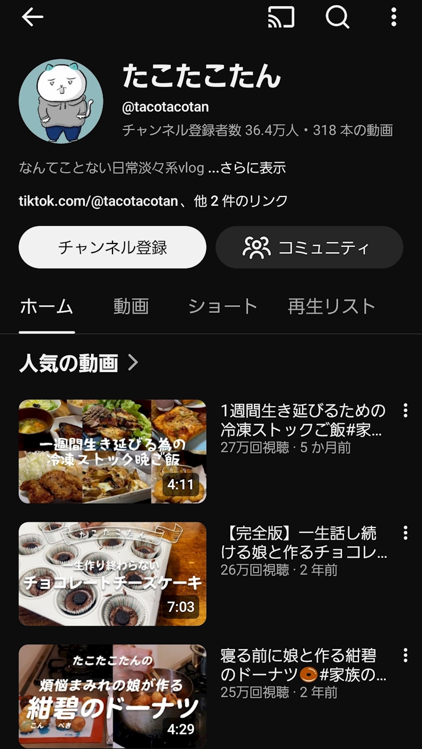 たこたこたんさんっていう日常系のVlogなんですけど、とってもほっこりするんですよ〜☺️