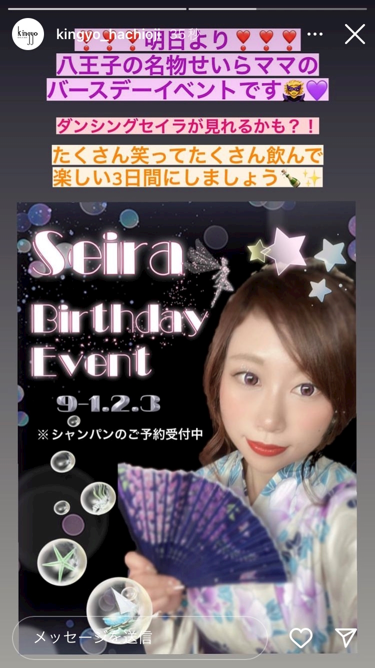 本日から3日間まいばーすでーよろしくお願い致します🥺❤️ - 星来ママ🌈八王子 Kingyo - GIRL'S BAR kingyo・キンギョ - 八王子のガールズバー