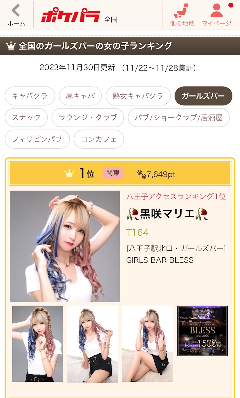 全国ガールズバーランキングでは