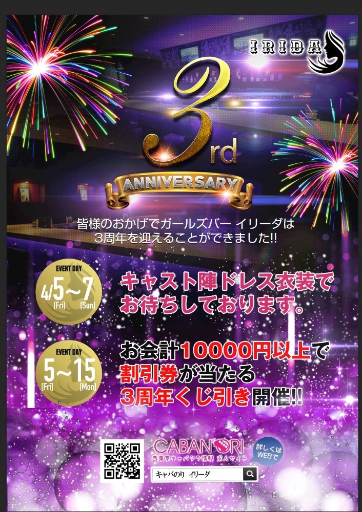 イリーダ3周年🎉 - りょーやクン - IRIDA・イリーダ - 八王子のガールズバー