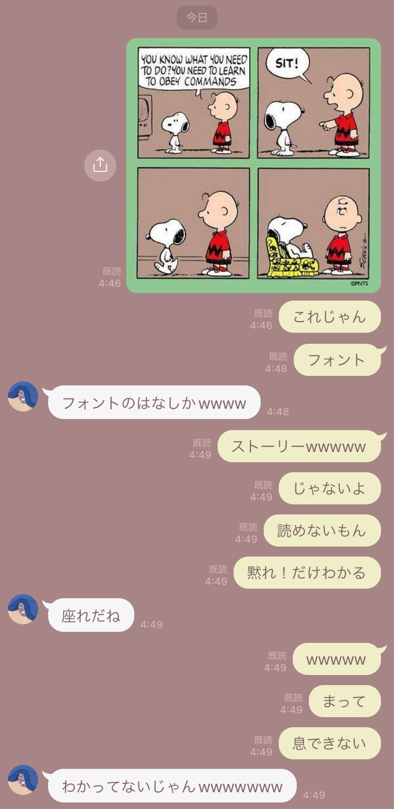 スヌーピーの連れ「SIT!」