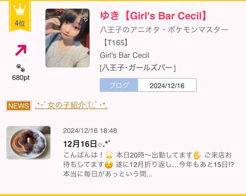 12月17日✩.*˚ - ゆき【Girl's Bar Cecil】 - Girl's Bar Cecil・セシル - 八王子のガールズバー