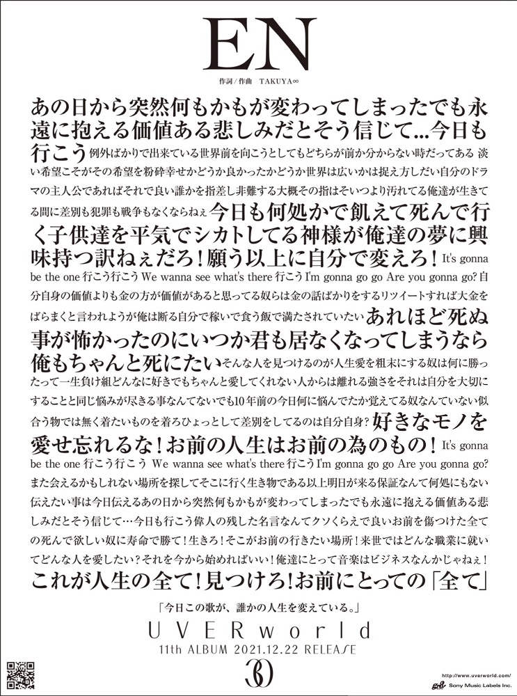 新曲の「EN」という曲のタイトルです☺️